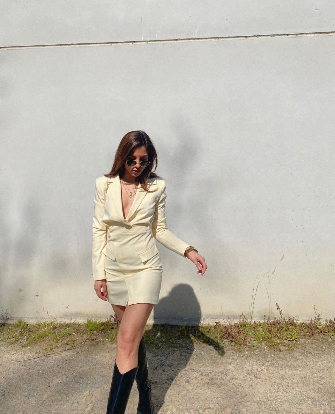 Elevate your wardrobe this spring and summer with our exquisite light luxury dress, designed for the modern woman who appreciates both style and comfort. This chic piece features a suit collar that adds a touch of sophistication, while the high waist accentuates your figure beautifully. The clever fake two-piece design offers versatility, allowing you to dress it up or down for any occasion.