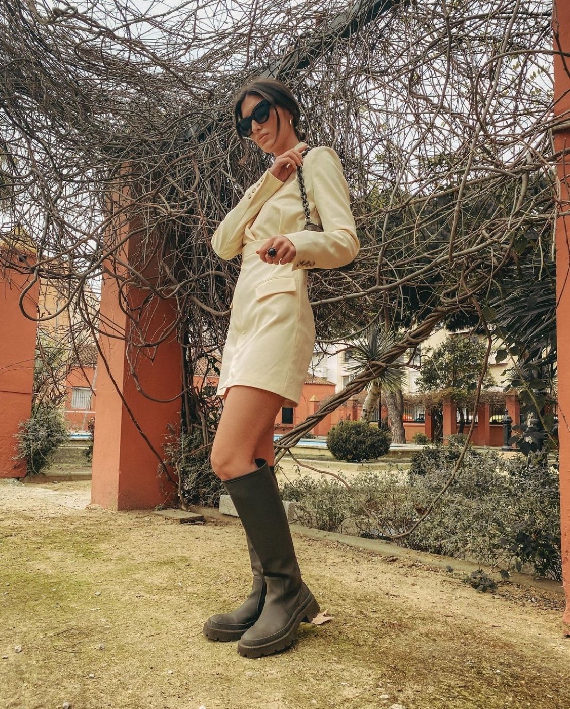 The asymmetrical zipper adds a unique flair, ensuring you stand out in the crowd. Crafted from a blend of high-quality materials (31%-50% content), this A-line skirt dress is perfect for both casual outings and more formal events. The long sleeves provide a comfortable fit, while the short skirt length keeps it trendy and fresh.