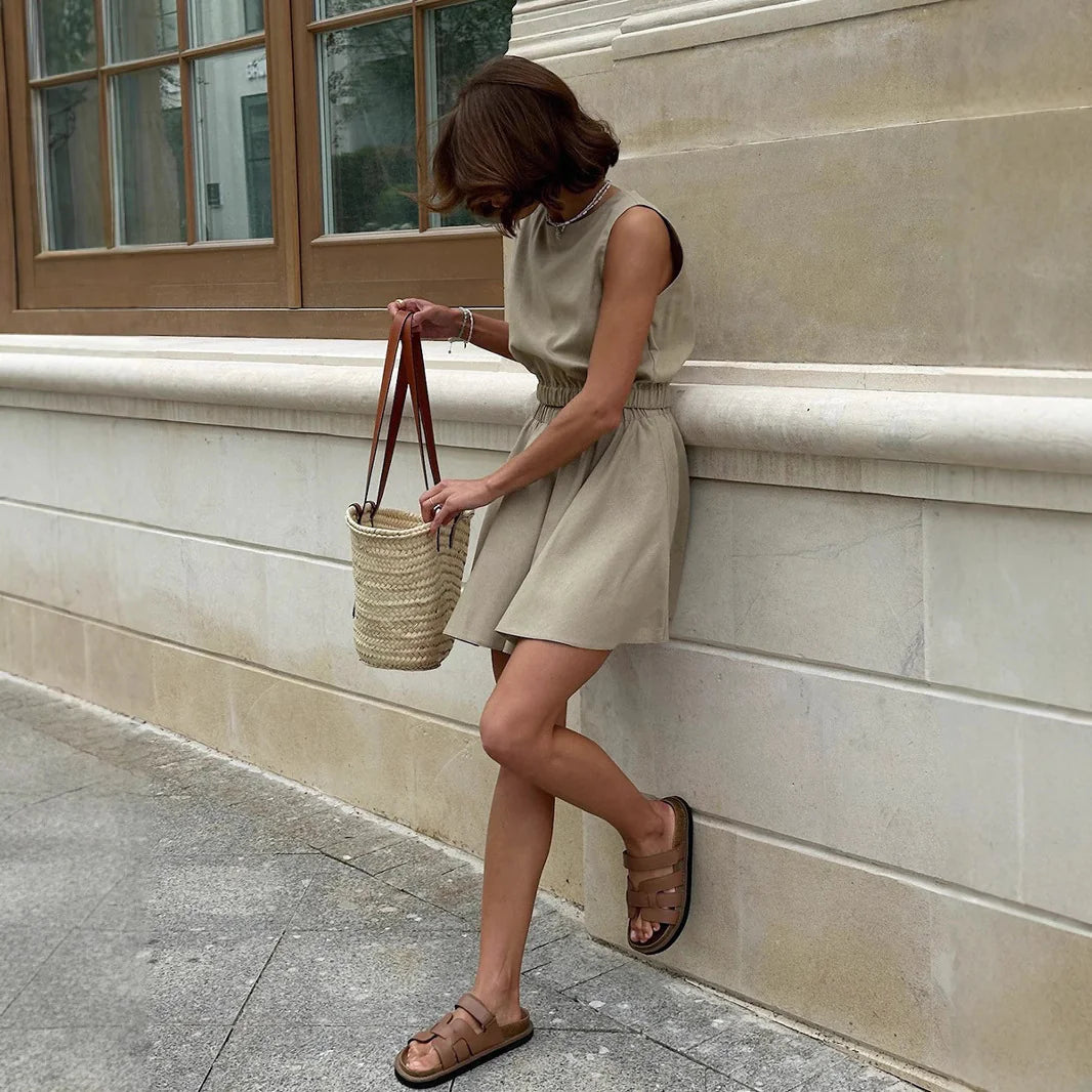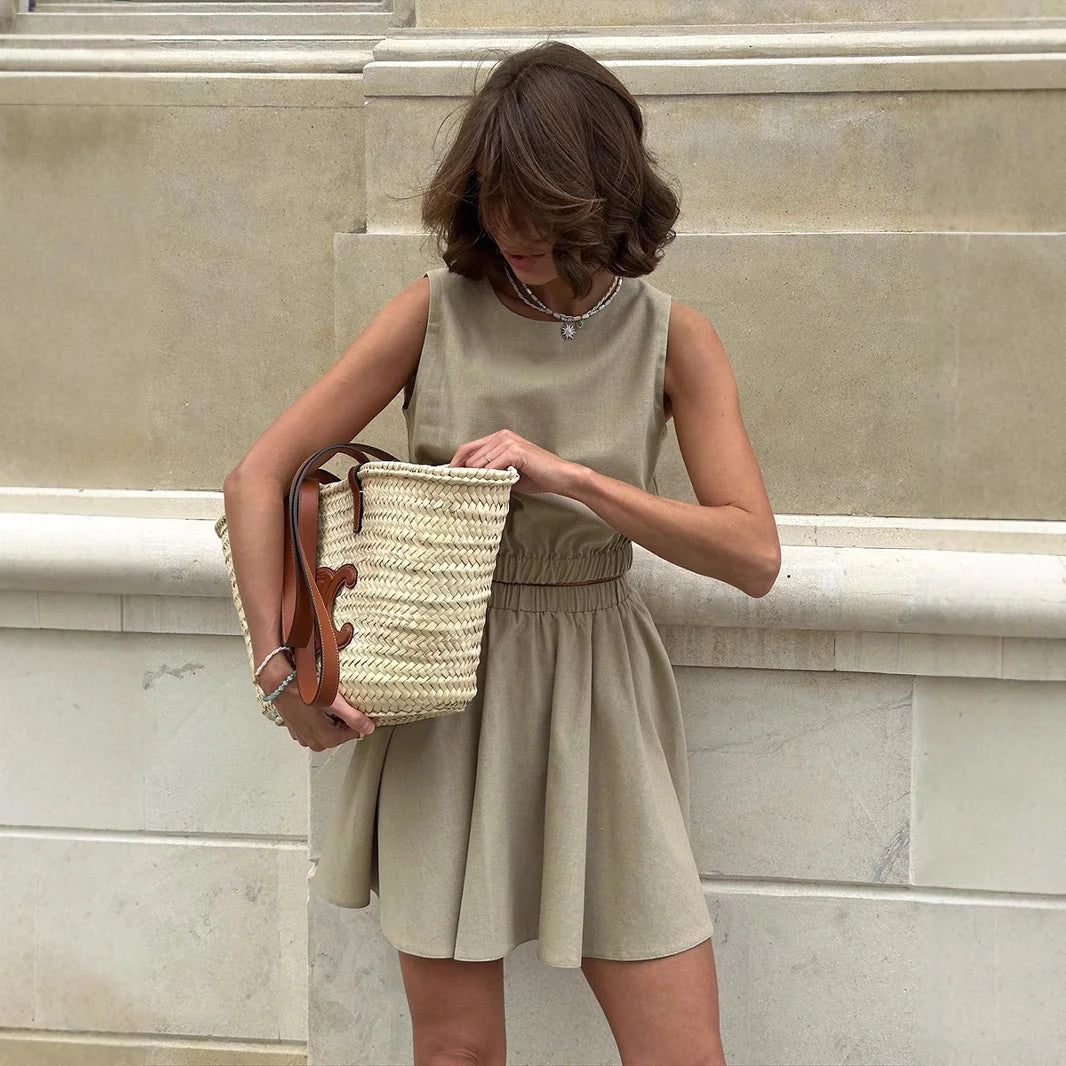 Furrzy Cotton Linen Short Skirt Casual Set for Women